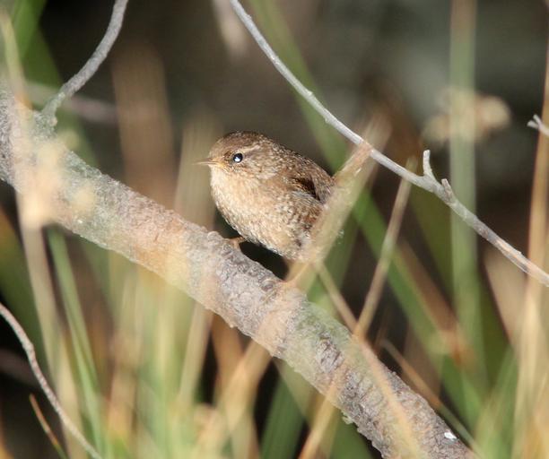 Keywords: bird animal outdoor grass plant I called this bird a Winter Wren because it appeared very pale and un-buffy compared with west coast Pacific Wrens that I am accustomed to seeing in California. Also this bird appeared a bit more speckled on the back and the tail less red. The two-note call note was not like those that I hear in California. This call note was softer, slower and less harsh/strident. Comments are welcome. By the way, the photo was taken with flash, but the bird really appeared this pale in real life. I called this bird a Winter Wren because it appeared very pale and un-buffy compared with west coast Pacific Wrens that I am accustomed to seeing in California. Also this bird appeared a bit more speckled on the back and the tail less red. The two-note call note was not like those that I hear in California. This call note was softer, slower and less harsh/strident. Comments are welcome. By the way, the photo was taken with flash, but the bird really appeared this pale in real life. |