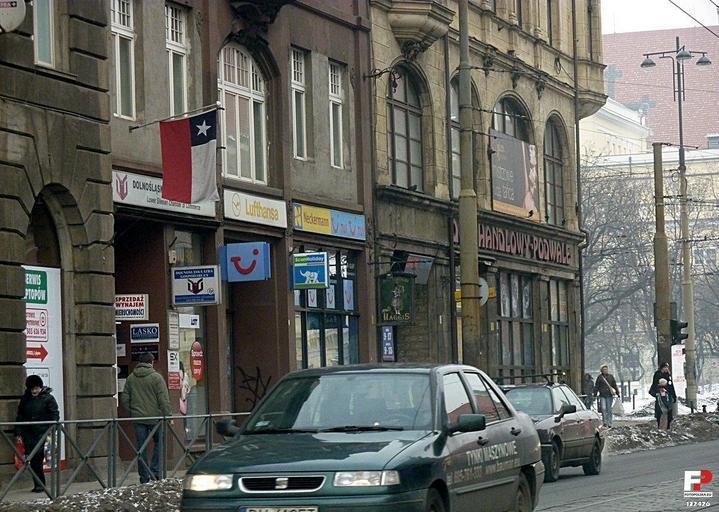 | Keywords: Wrocław, Świdnicka 39 - fotopolska.eu (132426).jpg pl Ulica Świdnicka we Wrocławiu budynek narożny z Podwalem dawniej Klub Dziennikarza dziś Dom Handlowy Podwale Widoczna brama wejściowa do budynku przy Świdnickiej 39 z szyldami m in TUI Lufthansy oraz Dolnośląskiej Izby Gospodarczej w której mieści się także Konsulat Honorowy Republiki Chile prezes DIG jest zarazem konsulem honorowym oznaczony biało-czerwono-niebieską flagą tego państwa W głębi na trzecim planie widoczny fragment kremowożółtego budynku Opery Wrocławskiej a za nim czerwony dach kościoła św Doroty Street name Świdnicka House number 39 House name Postal code Wrocław Stare Miasto DS PL 2010-02-09 http //fotopolska eu/132426 foto html Fotopolska eu http //fotopolska eu/49 user html Julo Watermark http //fotopolska eu/49 user html Julo / fotopolska eu Yarl 2012-10-19 Świdnicka Street in Wrocław |