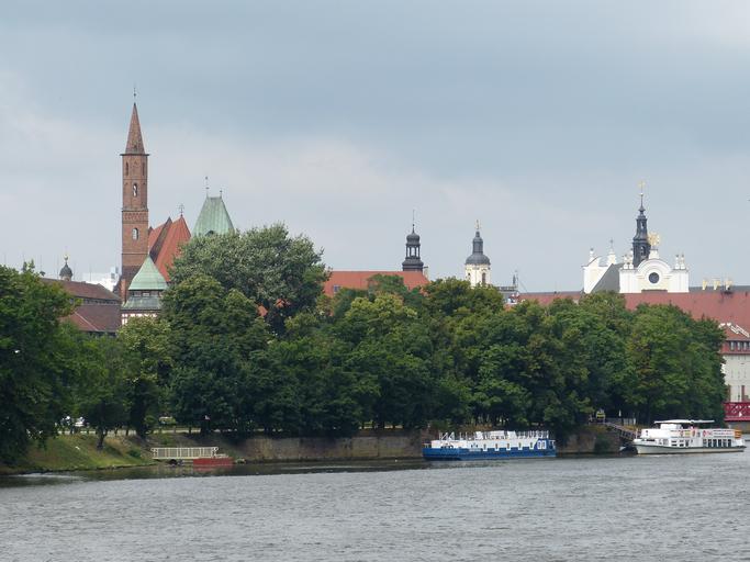 Keywords: wroclaw wrocław poland silesia church steeple ostrów tumski river historically trees