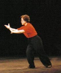 Keywords: Wu Yan-hsia GBT 1995.jpg Wu style tai chi master Wu Yen-hsia Wu Yanxia grand-daughter of Wu Chien-ch'uan Wu Jianquan demonstrating a tai chi form on stage 1995 Own 1995-10 Bradeos Graphon Tai Chi Chuan Masters