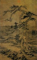 Keywords: Wu Zhen. Twin Pines. 180x111,4 cm. 1328. National Palace Museum, Taipei.jpg en Wu Zhen Landscape with Two Pine Trees Twin_Pines _180x111 4_cm _1328 _National_Palace_Museum _Taipei ja 呉鎮 双 図軸 元・泰定5年(1328) 絹 墨画 180 1 x 111 4 cm 台北市 国立故宮博物院 http //www npm gov tw/en/collection/selections_01 htm pageno 3 catno 15 Wu_Zhen 呉鎮 Institution National Palace Museum 1328 Wu Zhen Shan shui paintings in the National Palace Museum Paintings of mountains Paintings of the Yuan Dynasty Pines in art Karst topography in China Ink and wash paintings in China Landscape paintings of China Scrolls of China Chinese literati paintings Chinese silk Ancient Chinese art Artists from China Collections of art in China Art from Asia 1328 paintings PD-old-100 |