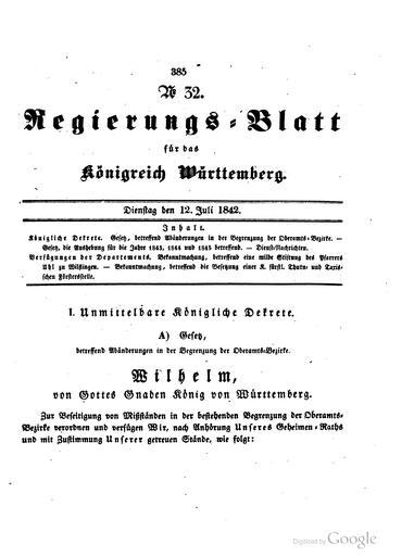 Keywords: Württemberg Regierungsblatt 1842 385.png Württemberg Regierungsblatt 1842_ png 384 386 Regierungs-Blatt für das Königreich Württemberg vom Jahr 1842 chBGAAAAcAAJ 1842 Kingdom of Württemberg PD-old-70-1923 De Königreich Württemberg Regierungsblatt 1842 |
