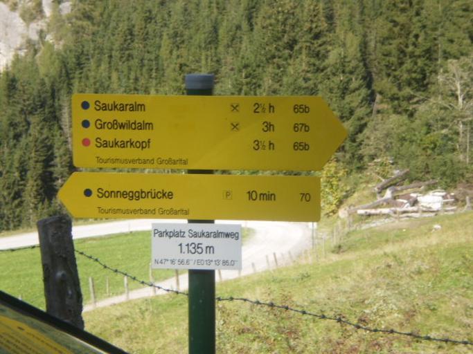 Keywords: WW-Großarl-189.JPG Wanderwegweiser Großarl own 2011-09-24 15 35 12 Schermy 47 2750033333 13 2301716667 cc-zero Hiking and footpath fingerposts in Großarl Altitude signs in Großarl