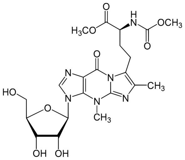 Keywords: Wybutosine.svg en Wybutosine Y-base yW de Wybutosin own Yikrazuul 2010-04-18 Nucleosides