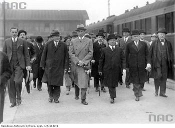 Keywords: Wyjazd marszalka senatu Wladyslawa Raczkiewicza do Argentyny i Brazylii - 6 June 1933 AD.jpg en The departure of the Marshal of the Senate of Poland Wladyslaw Raczkiewicza 1885-1947 to Argentina and Brazil 6 June 1933 AD ru Выезд ма шала сената Польши Владислава Рачкевича 1885-1947 в А гентину и Б азилию 6 че веня 1933 г be Выезд ма шалка сената Польшчы Уладзіслава Рачкевіча 1885-1947 да А генціны і Б азіліі 6 чэ веня 1933 г pl Wyjazd marszałka senatu Polski Władysława Raczkiewicza 1885-1947 do Argentyny i Brazylii 6 czerwca 1933 r http //www audiovis nac gov pl/obraz/35682/e902b7cd1c5c52cce61f814dc8614c1e/ - Narodowe archiwum cyfrowe Poland author 1933 public domain in Poland PD-Polish Pożegnanie wyjeżdżającego do Ameryki Południowej marszałka senatu Władysława Raczkiewicza I rząd czwarty z prawej na Dworcu Głównym Widoczni m in prezes Najwyższej Izby Kontroli Jakub Krzemieński senatorowie Julian Szymański Antoni Bogucki Leon Łubieński sekretarz osobisty marszałka senatu Aleksander Mohl dyrektor Biura Senatu Adam Piasecki Władysław Raczkiewicz Members of the Senate of Poland 1919-1939 I term 1922-1927 Members of the Senate of Poland 1919-1939 II term 1928-1930 Members of the Senate of Poland 1919-1939 III term 1930-1935 PD-old