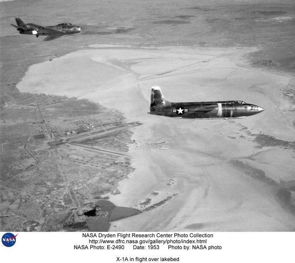 | Keywords: X-1A in flight over lakebed DVIDS739014.jpg en The Bell Aircraft Corporation X-1A 48-1384 returning from an Air Force test flight over Edwards Air Force Base California in late 1953 A North American F-86A Sabre as chase plane will follow the X-1A to touchdown The Rogers Dry Lake is the whitish area under the planes with the airfield at the edge of the dry lake Bell test pilot Jean Skip Ziegler made six flights between 14 February and 25 April 1953 Air Force test pilots Maj Charles Chuck Yeager and Maj Arthur Kit Murray made 18 test flights between 21 November 1953 and 26 August 1954 NACA test pilot Joseph Walker made one successful flight on 20 July 1955 During a second flight attempt on 8 August 1955 an explosion damaged the aircraft shortly before launch Walker unhurt climbed up into the JTB-29A mothership and the X-1A was jettisoned over the Edwards AFB bombing range There were five versions of the Bell X-1 rocket-powered research aircraft that flew at the NACA High-Speed Flight Research Station Edwards California The bullet-shaped X-1 aircraft were built by Bell Aircraft Corporation Buffalo N Y for the U S Army Air Forces after 1947 U S Air Force and the National Advisory Committee for Aeronautics NACA The X-1 Program was originally designated the XS-1 for EXperimental Sonic The X-1's mission was to investigate the transonic speed range speeds from just below to just above the speed of sound and if possible to break the sound barrier Three different X-1s were built and designated X-1-1 X-1-2 later modified to become the X-1E and X-1-3 The basic X-1 aircraft were flown by a large number of different pilots from 1946 to 1951 The X-1 Program not only proved that humans could go beyond the speed of sound it reinforced the understanding that technological barriers could be overcome The X-1s pioneered many structural and aerodynamic advances including extremely thin yet extremely strong wing sections; supersonic fuselage configurations; control system requirements; powerplant compatibility; and cockpit environments The X-1 aircraft were the first transonic-capable aircraft to use an all-moving stabilizer The flights of the X-1s opened up a new era in aviation The first X-1 was air-launched unpowered from a Boeing B-29 Superfortress on Jan 25 1946 Powered flights began in December 1946 On Oct 14 1947 the X-1-1 piloted by Air Force Captain Charles Chuck Yeager became the first aircraft to exceed the speed of sound reaching about 700 miles per hour Mach 1 06 and an altitude of 43 000 feet The number 2 X-1 was modified and redesignated the X-1E The modifications included adding a conventional canopy an ejection seat a low-pressure fuel system of increased capacity and a thinner high-speed wing The X-1E was used to obtain in-flight data at twice the speed of sound with particular emphasis placed on investigating the improvements achieved with the high-speed wing These wings made by Stanley Aircraft were only 3 3/8-inches thick at the root and had 343 gauges installed in them to measure structural loads and aerodynamic heating The X-1E used its rocket engine to power it up to a speed of 1 471 miles per hour Mach 2 24 and to an altitude of 73 000 feet Like the X-1 it was air-launched The X-1 aircraft were almost 31 feet long and had a wingspan of 28 feet The X-1 was built of conventional aluminum stressed-skin construction to extremely high structural standards The X-1E was also 31 feet long but had a wingspan of only 22 feet 10 inches It was powered by a Reaction Motors Inc XLR-8-RM-5 four-chamber rocket engine As did all X-1 rocket engines the LR-8-RM-5 engine did not have throttle capability but instead depended on ignition of any one chamber or group of chambers to vary speed The X-1A X-1B and the X-1D were growth versions of the X-1 They were almost five feet longer almost 2 500 pounds heavier and had conventional canopies The X-1A and X-1B were modified to have ejection seats Their mission was to continue the X-1 studies at higher speeds and altitudes The X-1A began this research after the X-1D was destroyed in an explosion on a captive flight before it made any research flights On Dec 12 1953 Major Charles Yeager flew the X-1A up to a speed of 1 612 miles per hour almost two-and-a-half times the speed of sound Then on Aug 26 1954 Major Arthur Murray took the X-1A up to an altitude of 90 440 feet Those two performances were the records for the X-1 program Later the X-1A was also destroyed after being jettisoned from the carrier aircraft because of an explosion The X-1B was fitted with 300 thermocouples for exploratory aerodynamic heating tests installed on it It also was the first aircraft to fly with a reaction control system a prototype of the system used on the X-15 The X-1C was cancelled before production All three of the Bell Aircraft Company-manufactured planes had 6 000-pound-thrust XLR-11 four-chambered rocket engines The XLR-11 was built by Reaction Motors Inc The aircraft were all air-launched from a carrier aircraft NASA Identifier NIX-E-2490 2009-09-23 Glenn Research Center https //www dvidshub net/image/739014 739014 2012-10-18 00 30 WASHINGTON DC US PD-USGov Aircraft at Rogers Dry Lake Images from DoD uploaded by Fæ Bell X-1 North American F-86 Sabre |