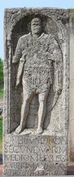 | Keywords: Xanten legionary secundus gravestone.jpg LVR-LandesMuseum Bonn Grabmal des Legionärs Secundus Q uintus PETILIVSQ uinti F ilius O u FENT ina tribu SECVNDVS DOM o MEDIO lano MILES LEG ionis XV PRIM igeniae ANN orum XXV STIP endiorum V H eres EX T estamento F aciendum C uravit Quintus Petilius Secundus Sohn des Quintus aus dem Stammbezirk Oufentina aus Mailand Soldat der 15 Legion Primigenia 25 Lebensjahre 5 Dienstjahre der Erbe hat auf Grund des Testaments den Grabstein machen lassen Der 15 Legion Primigenia in der Petilius diente war seit 13 n Chr in Xanten stationiert Mit der 5 Legion bauten sie das Lager Vetera in Stein und waren dort stationiert bis das beim Bataveraufstand in 69/70 n Chr zerstört wurde Petilius trägt Tunika und Schultermantel und als Waffen ein Wurflanze ein Schwerd und ein Dolch nl Foto genomen in APX het archeologisch park te Xanten Voor de Latijnse tekst zie Duitse versie Quintus Petilius Secundus zoon van Quintus van de stam der Oufentina van Milaan soldaat van het 15de legioen Primigenia 25 jaar oud met 5 dienstjaren De erfgenaam heeft op grond van het testament deze grafsteen laten oprichten Het vijftiende legioen Primigenia waar in Petilus diende was sinds 13 n C in Xanten gevstigd samen met het vijfde legioen Beide legioenen bouwden kamp Vetara in steen Het werd vernietigd tijdens de opstand van de Batavieren in 69/70 n C Petilus draagt een tuniek en een schoudermantel hij heft een zwaard een werplans en een dolk Quintus Petilius Secundus son of Quintus from the tribe of the Oufentina from Milan soldier of the 15th Legion Primigenia 25 years old 5 years in service the heir has erected this gravestone in compliance with the testament The 15th Legion was stationed along with the 5th in Xanten since 13 AD Both legions built their camp Vetera in stone The camp was destroyed by the Bataves during the 69/70 revolt Petilius is wearing a tunica and a shoulder cape He is armed with a lance a sword and a dagger es Reproducción de la inscripción CIL XIII 8079 de Bonna Bonn Alemania emplazada en el parque arqueológico de Vetera cuyo texto dice Q uintus PETILIVS Q uinti F ilius / O u FENT ina tribu / SECVNDVS DOM o / MEDIO lano MILES LEG ionis / XV PRIM igeniae ANN orum / XXV STIP endiorum V H eres / EX T estamento F aciendum / C uravit own Ad Meskens 2009-04 Notification/copy of publication is appreciated a mention to Ad Meskens be included PD-Old cc-by-sa-3 0 GFDL Ancient Roman reliefs in North Rhine-Westphalia Ancient Roman inscriptions in Xanten Ancient Roman gravestones in Germany LVR-Archäologischer Park Xanten Roman monuments in Xanten Ancient Roman military people Legio XV Primigenia CIL XIII 008079 Roman legionary soldiers in art |