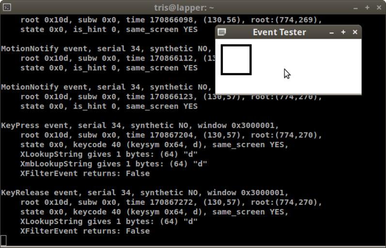 Keywords: Xev command.png Running the xev command on a GNU/Linux operating system Looks like I moved the cursor around and hit d I took the screenshot 2013-04-28 Palosirkka <span class signature-talk >talk</span> 21 17 27 April 2013 UTC Cc-zero Screenshots of free software |
