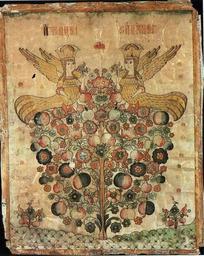 | Keywords: Алконост и Сирин XIX.jpg  ru  адпись «Птицы Си ины» так обычно  исовали птицу Алконост с ко оной и  уками в кото ых де жит пе гамент и букет цветов П иоб етено «на то гу» в 1903 г Художник объединил двух одинаковых птице дев поместив их над большим де евом яблони en Sirins and apples century 19 http //cyrillitsa ru/posts/716-sirin-i-alkonost-russkiy-risovannyy-lubok html author Custom license marker 2013 06 13 PD-Art-100 Uploaded with UploadWizard Sirin Alkonost Malus in Russia Malus in art |