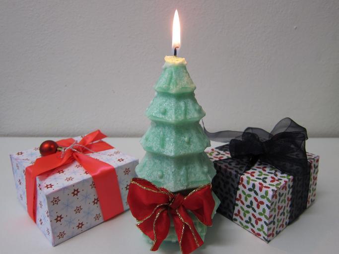 Keywords: xmas tree christmas tree candle xmas green gift present celebration pine ribbon decorative