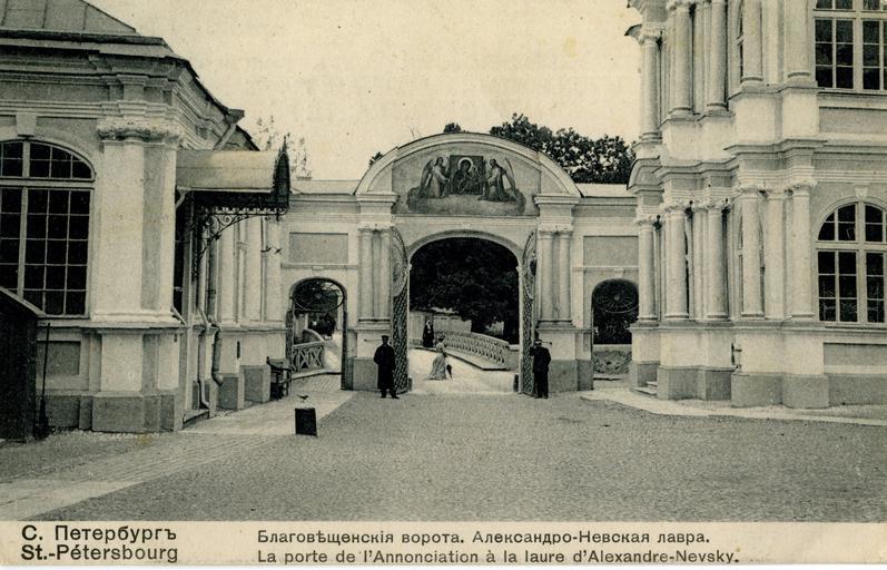 | Keywords: Санкт-Петербург начала XX века. Александро-Невская лавра. Благовещенские ворота.jpg  Санкт-Пете бу г Отк ытка начала XX века http //infoglaz ru/ p 33453 2008-03-20 uknown PD-RusEmpire Postcards of churches in Saint Petersburg Files uploaded by Andrew Butko from various sources |