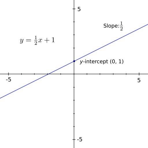 Keywords: Y=(1!2)x+1.svg en The graph of <math>y \tfrac 1 2 x + 1</math> own Adrignola 2010-11-17 High School Trigonometry