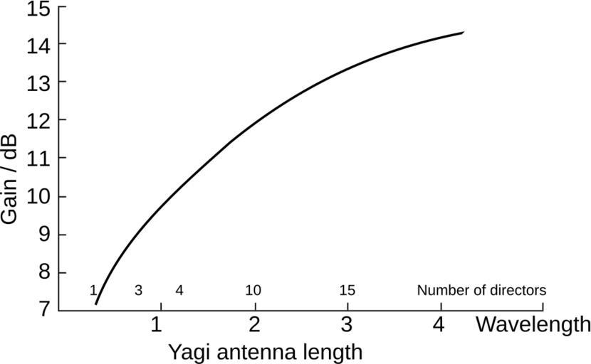 | Keywords: Yagigainw.svg en Yagi antenna gain as a function of antenna length in units of wavelength lambda The distance between directors is 0 1 to 0 2 lambda; its number gives an indication of length own Trackler Source http //tf nist gov/timefreq/general/pdf/451 pdf Yagi Antenna Design Peter P Viezbicke National Bureau of Standard Technical Note 688 December 1976 Yagi-Uda antennas |