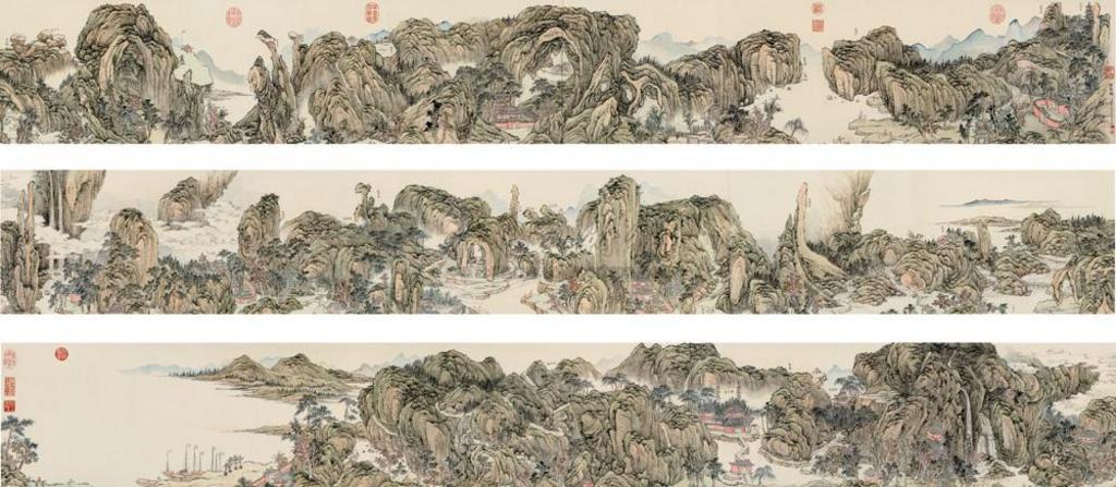 | Keywords: Yandang Mountain.jpg en Yandang mountain ink and color on paper hand scroll 31 5 x 731 cm This painting was sold 129 92 million 20 million at Baoli Beijing Spring Auction in 2010 zh 钱维城 雁荡图 ,又名 雁荡五十三景图 ,纸 绿设色手卷,长731 2厘米 该画 2010年北京 利春拍会上以1 2992亿元人民币成交 Qing Dynasty http //www dashuhua com/paimai/30540662 html ms Qian Weicheng PD-Art PD-old-100 1772 Uploaded with UploadWizard Paintings of the Qing Dynasty Paintings of mountains Qian Weicheng | ||||