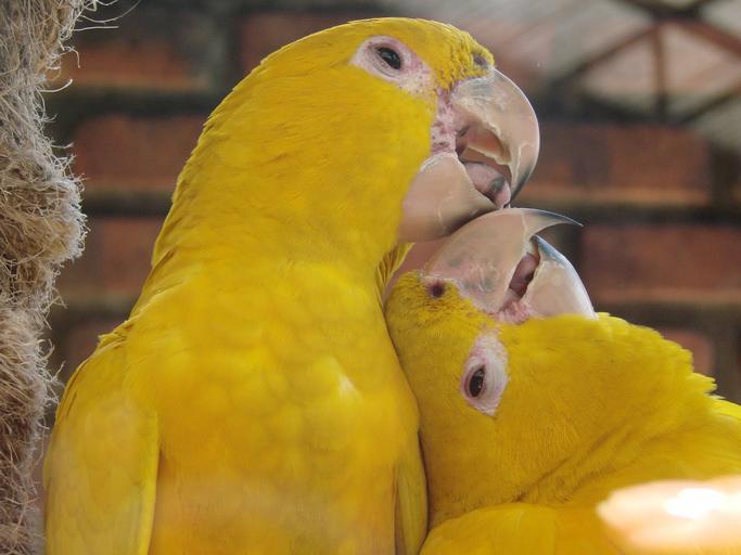 Keywords: yellow birds courtship animal nature bird birds kissing