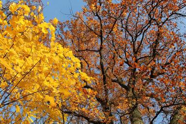Keywords: yellow brown color contrast sky autumn leaves nature blue coloring sun fall color fall leaves gold forest deciduous tree color autumn leaf farbenspiel