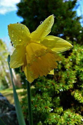 Keywords: yellow daffodil narcissus jonquil blossom yellow flower petals spring flower rain drops garden free photos water drops nature flora