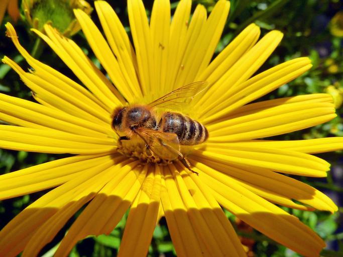Keywords: yellow daisy bee flower nature macro