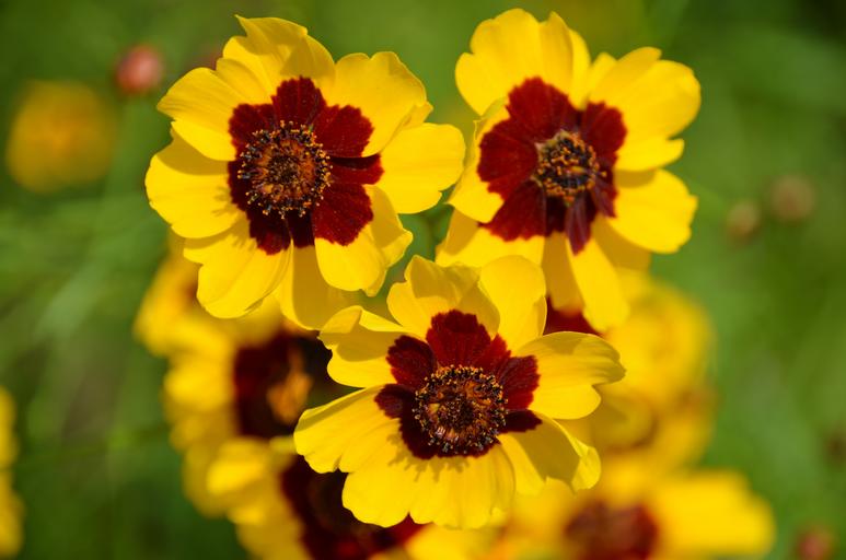 Keywords: yellow filled double flower meadow pointed flower summer flower several nature flower wild flowers close violet natural plant