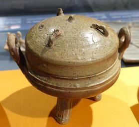 Keywords: Yellowish-green glazed pottery tripod with cover, Eastern Han dynasty, from Lei Cheng Uk Han Tomb, Sham Shui Po, Hong Kong - Hong Kong Museum of History - DSC00839.JPG en Exhibit in the Hong Kong Museum of History Hong Kong This artwork is old enough so that it is in the public domain Photography was permitted in the museum without restriction 2014-07-27 01 45 02 own Daderot other versions PD-100 cc-zero Chinese ceramics in the Hong Kong Museum of History Uploaded with UploadWizard Ceramics of the Eastern Han Dynasty |