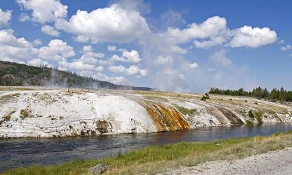 Keywords: yellowstone national park wyoming usa landscape scenery tourist attraction erosion geyser nature volcanic minerals water steam volcanism hot geothermal river colorful