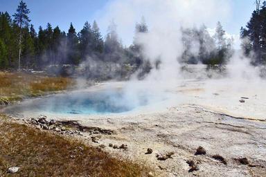 Keywords: yellowstone national park wyoming usa landscape scenery tourist attraction erosion geyser nature volcanic minerals water steam volcanism hot geothermal deep blue pond colorful