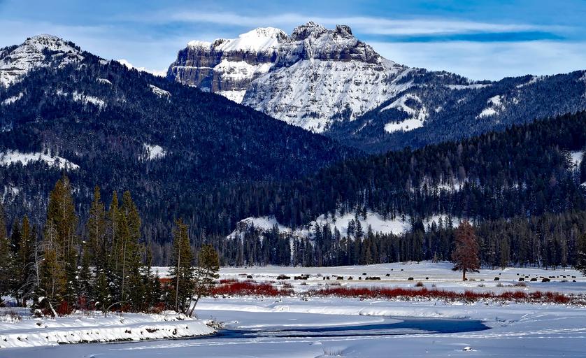 Keywords: yellowstone national park wyoming landscape scenic destinations travel beautiful nature outdoors country wilderness hdr mountains winter snow forest trees woods valley meadow stream creek bison buffalo wildlife