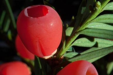 Keywords: yew taxus plant bush periwinkle yew family taxaceae conifer seeds red meaty seed coat cup shaped toxic ingredients taxin b macro