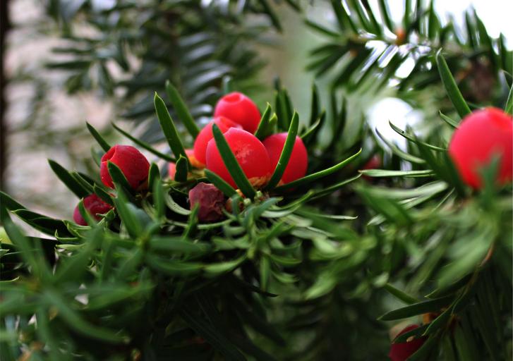 Keywords: yew tree autumn fruits prickly berries spur nature fruit