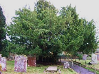 Keywords: Yew tree, Capel.JPG en Ancient Yew tree in churchyard of St Thomas a Becket Capel 2011-12-24 own Poliphilo cc-zero Churchyards in Kent St Thomas a Becket Capel Pinales in Kent Taxus baccata in England Uploaded with UploadWizard