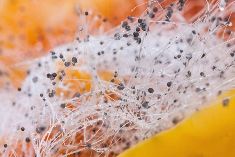 Keywords: yoke mushrooms zygomycota on paprika yoke like structures zygosporen black droplets droplet shaped molds spoiled food corrupted health risk invisible macro close