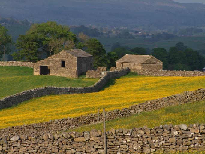 Keywords: yorkshire england united kingdom farm fields buildings stone rural rustic scenic wall wildflowers pasture nature outside country countryside forest trees woods summer spring