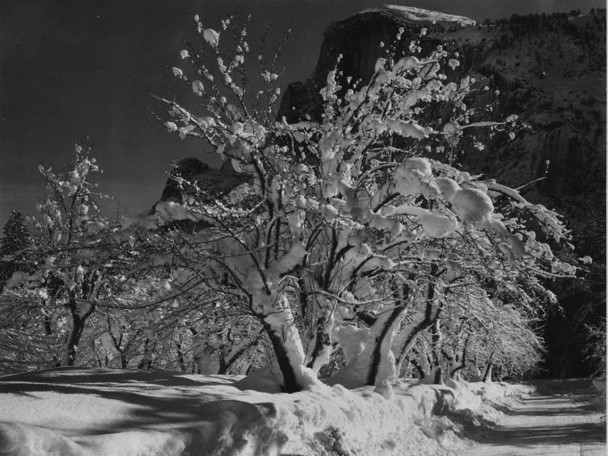 Keywords: yosemite national park california apple tree trees black and white 1933 nature outside winter snow ice landmark destinations mountains