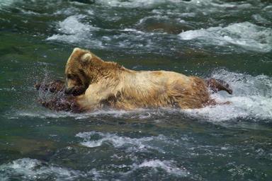 Keywords: Young bear catch salmon fishing brown sockeye river water