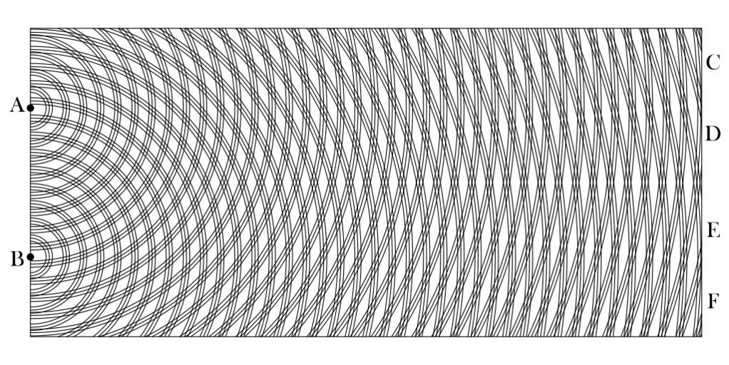 | Keywords: Young diffraction.svg A vectorized version of a sketch made by Thomas Young to illustrate the two-slit diffraction of light Narrow slits at A and B act as sources and waves interfering in various phases are shown at C D E and F Young presented the results of this experiment to the Royal Society in 1803 Own work based on the public-domain image Young Diffraction png at en wikipedia org 2007-08-03 Sakurambo Young Diffraction png Double-slit experiments | ||||