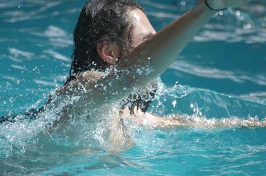 Keywords: swim pool adult girl race wet leisure glasses activity red cap competitive active summer fitness people one caucasian female recreation energy effort lifestyle healthy young woman athlete blue person splashing compe