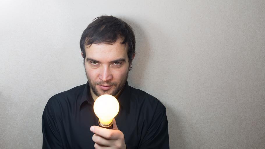 MAKE A MEME View Large Image bulb light idea lamp bright brain concept young guy clever handsome man