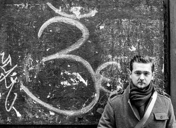 Keywords: young man om young male people adult fashion men man wall casual elegance one confidence charming handsome looking attractive lifestyle standing cool person hair expression handsome young man outdoors youth