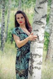 Keywords: young woman model female attractive person fashion lady hair dress style forest woods white birch trees landscape romantic sensual sunlight summer nature