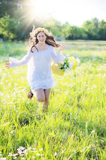 Keywords: young woman running pretty woman happy young female lifestyle healthy summer daisies flowers field meadow leisure