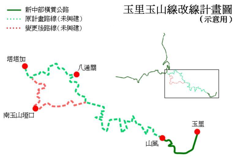 Keywords: Yuli-Yushan Line Future Map (Traditional Chinese).png zh-hant 玉里玉山線改線示意 2011-07-06 own Yiken 100px100px Uploaded with UploadWizard Road maps of Taiwan New Central Cross-Island Highway