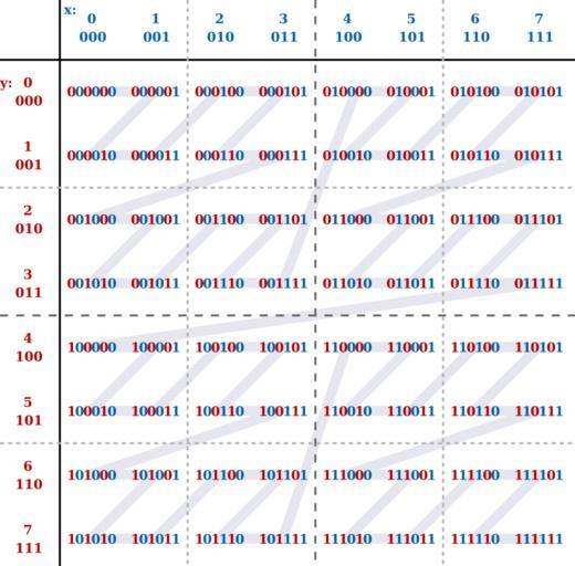 Keywords: Z-curve.svg The Z planefilling curve formed by interleaving the binary representations of the coordinates x y and sorting the resulting interleaved binary numbers own 2008-04-13 David Eppstein Files by User David Eppstein from en wikipedia Z-order curves |
