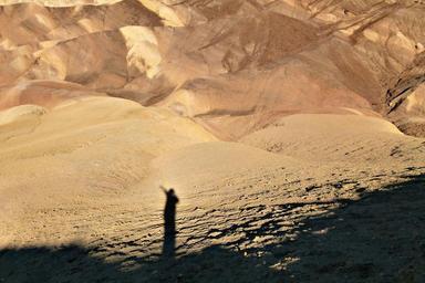 Keywords: zabriskie zabriskie point death valley california usa tourist attraction landscape sand stone nature scenery erosion hot dry desert human shadow