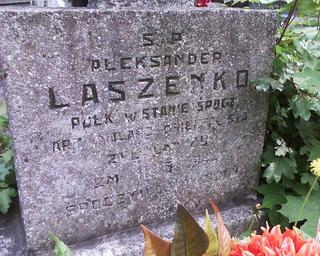 | Keywords: Zacierana przez czas tablica nagrobna artysty.jpg en Artist's gravestone Barely visible inscription Colonel Retired Orientalist painter pl Tablica nagrobna artysty Z trudem można odczytać napisy Pułkownik w stanie spoczynku Artysta malarz orientalista own Demi Sec 2011-05-14 Cc-zero Aleksander Laszenko Chopin Avenue Cemetery in Włocławek |