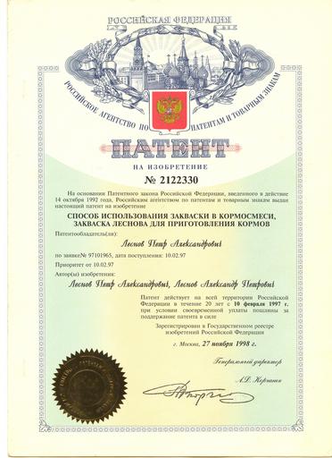 Keywords: Zakvaska Lesnova patent 1.jpg ru Патент РФ 2122330 на изоб етение Закваски Леснова 2008-07-23 own Zakvaskin PD-RU-exempt Insignia cc-by-sa-3 0 Patent Certificates from Russia