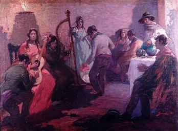 | Keywords: Zamacueca por Arturo Gordon.jpg  Artwork oil on canvas cm 56 77 Institution Museo Nacional de Bellas Artes Chile object history credit line accession number http //www portaldearte cl/img/obr/phag002e jpg PD PD-old-auto 1944 Arturo Gordon Paintings in the Museo Nacional de Bellas Artes Chile Uploaded with UploadWizard Cueca chilena |