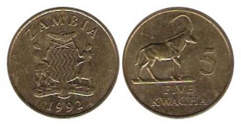 Keywords: Zambian 5 kwacha.JPG Zambian 5-kwacha coin 1992 Moneda de cinco kwachas zambianos de 1992 2006-08-26 own assumed B25es Coins_of_Zambia 1992 in Zambia