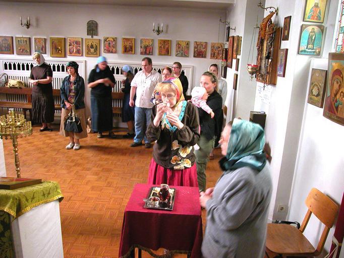 | Keywords: Zapivka.jpg Kirche «Maria Obchut» in Düsseldorf Це ковь Пок ова П есвятой Бого одицы в Дюссельдо фе The faithful partaking of zapivka blessed bread and wine which are consumed after receiving Holy Communion Holy Protection Church Düsseldorf own 2009-08-13 Velopilger Maria-Obhut-Kirche Düsseldorf Orthodox rite Divine Liturgy Food and Christianity Prosphora Orthodox Church in Düsseldorf 2009 in Düsseldorf | ||||