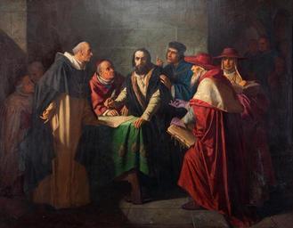 | Keywords: Zástupce koncilu u Mistra Jeronýma Pražského.jpg Artwork Creator Antonín Lhota 1873 Oil on canvas cm 126 163 Institution Galerie hlavního města Prahy accession number M - 2082 object history credit line http //www ghmp cz/online-sbirky/detail/12067/ rts 1 PD-Art PD-old-auto-1923 1905 Czech Republic Antonín Lhota Jeroným Pražský |