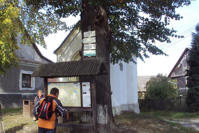 Keywords: Ždírec 7.JPG cs Rozcestník a tabule v obci own Zákupák 2013-10-05 Ždírec Česká Lípa District Hiking and footpath fingerposts in Česká Lípa District